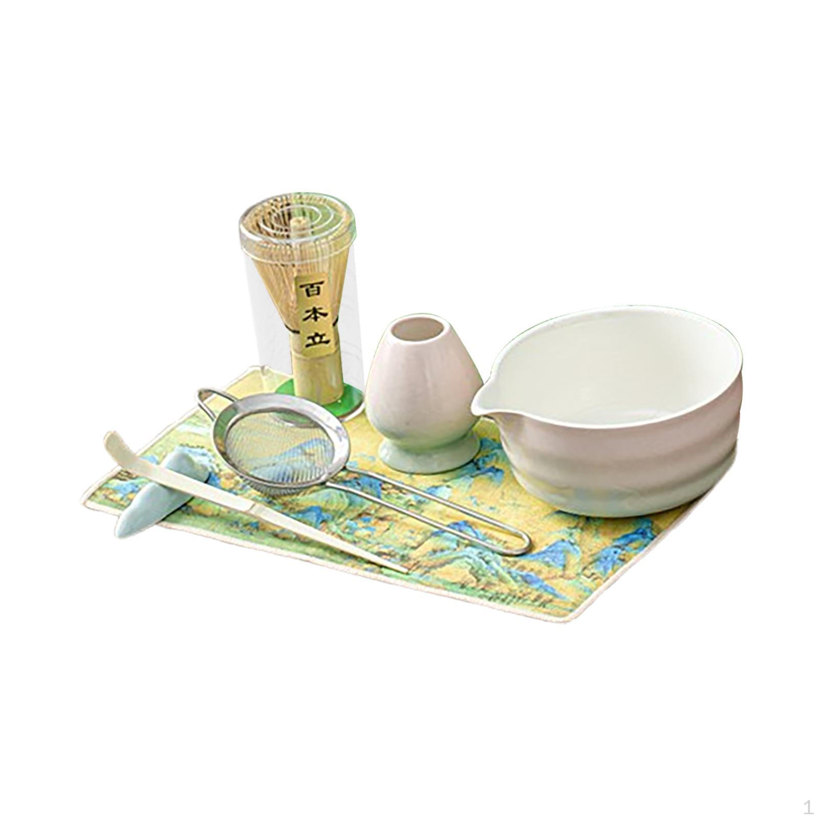 Набор из 7 предметов: венчик для матча, чаша с носиком, керамическая подставка для чая, коврик, посуда для влюбленных Pink