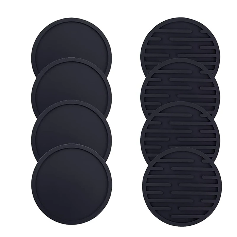 Набор из 8 подставок для горячих напитков, черные силиконовые подставки для защиты рабочего стола, Нескользящие, устойчивые к пятнам, не впи...
