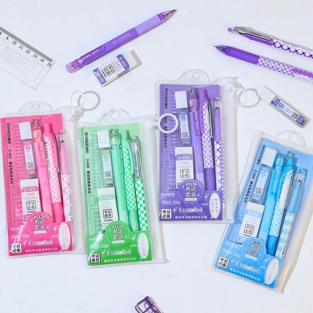 Набор канцелярских принадлежностей для экзамена с карандашом, черная гелевая ручка, набор канцелярских принадлежностей для студентов, набор для экзамена для студентов, учеба зелёный