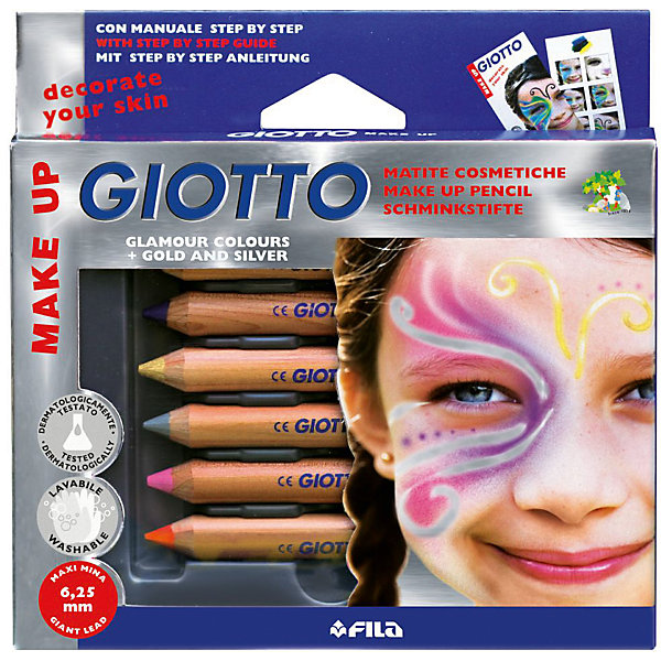 В набор Giotto MAKE UP MATITE GLAMOUR входят 6 восковых карандашей гламурных оттенков. С их помощью ребенок сможет создать прекрасный и безопасный грим. Карандаши рисуют очень мягко, не травмируя кожу. После использования грим легко смывается теплой водой.