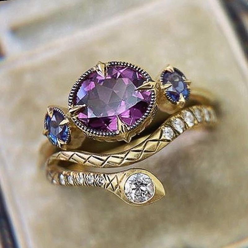 Набор колец в стиле змеи в стиле панк для женщин с очаровательным фиолетовым овальным фианитом в стиле ретро для девочек, аксессуары для пальцев, вечерние ювелирные изделия, подарок