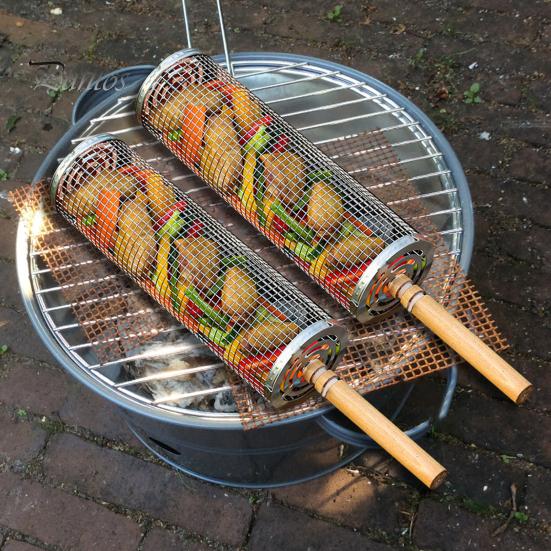 Набор корзин для гриля из нержавеющей стали с деревянной ручкой, передвижная решетка для барбекю для рыбы, креветок, мяса, овощей, картофеля фри, аксессуары для гриля, подарки 1 Set