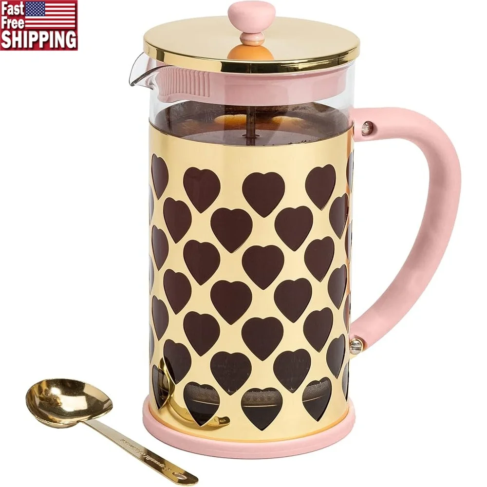 Набор кофеварки French Press с мерной ложкой в форме сердца, фильтр из нержавеющей стали на 8 чашек, некапельный носик для домашнего использования