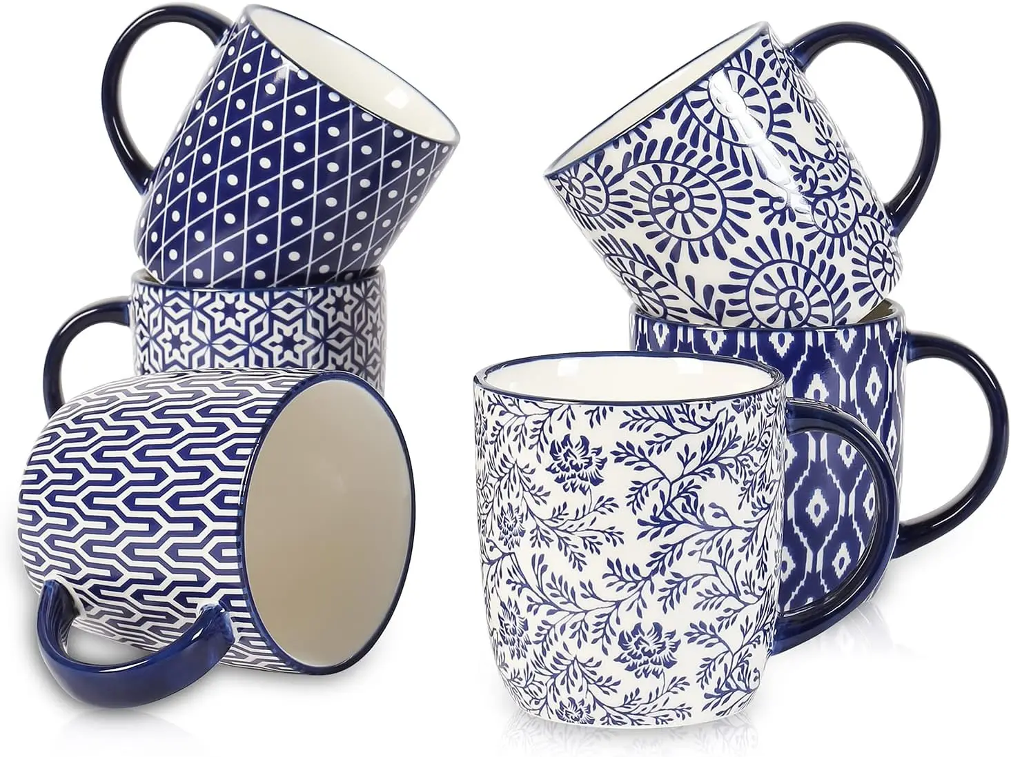 Набор кофейных кружек на 10 унций с ручкой, керамические кофейные чашки для капучино, латте, какао, чая с молоком, посудомоечной машиной, микроволновой печи S