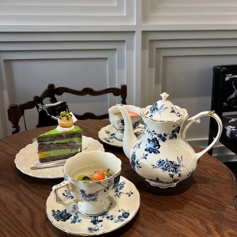 Набор кофейных чашек Ретро сине-белая керамическая кофейная чашка Изысканная английская чашка для послеобеденного чая Чайный сервиз Арабский набор