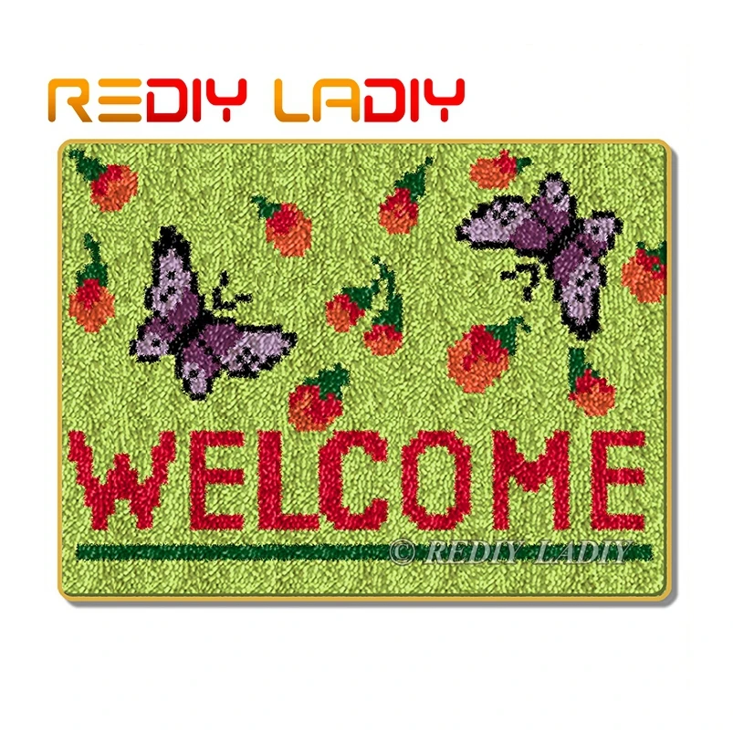 Набор крючков с защелкой, ковер, вязаный крючком ковер, добро пожаловать в домашнюю комнату, акриловая пряжа, предварительно напечатанная х...