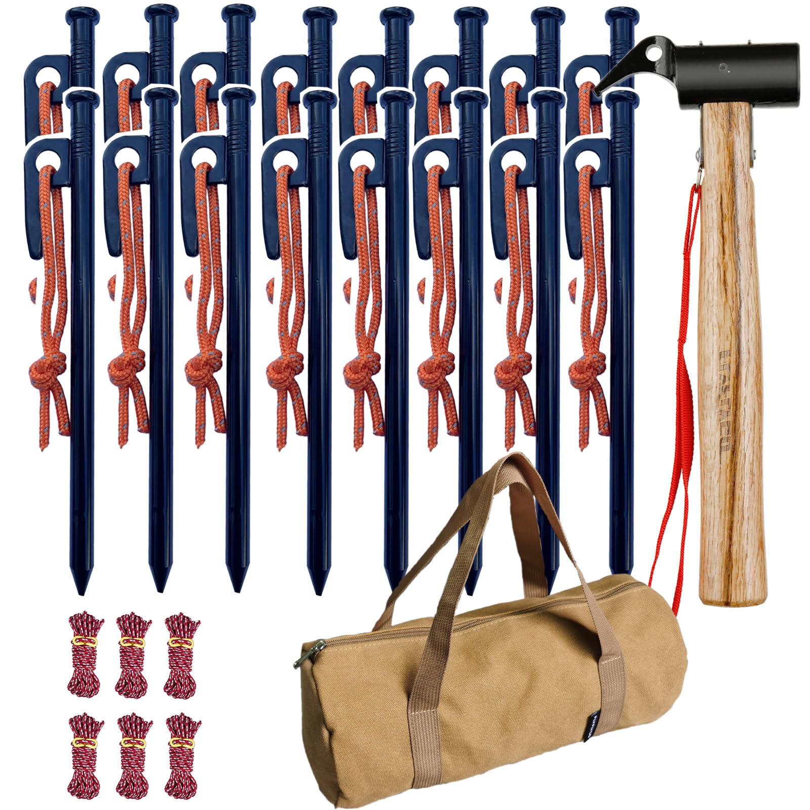 Набор молотков FLYFLYGO с холщовой сумкой, колышки для брезента, колышки для палатки, 16 шт., молоток с деревянной ручкой и ремнем, толщина веревки для палатки 4 мм, длина 4 м 6