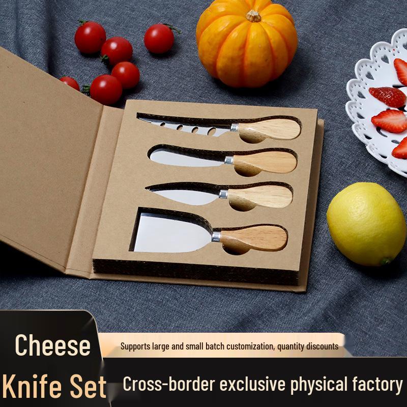 Набор ножей для сыра с деревянной ручкой – Включает нож, вилку и лопатку для нарезки сыра и пиццы 19cm x 18.5cm x 2.2cm