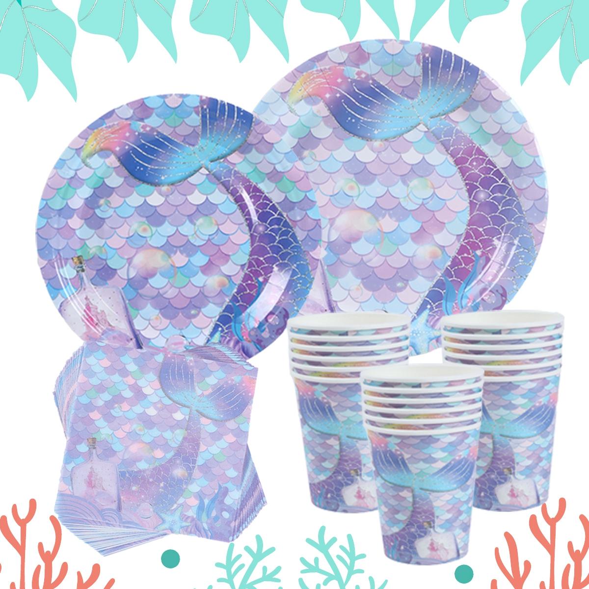 Набор одноразовой посуды «Русалочка» Бумажные тарелки для чашек Скатерть для стола Детская вечеринка по случаю дня рождения в стиле «Русалочка» оливковый