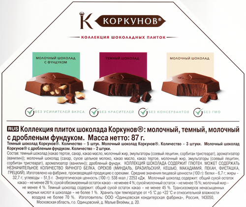 Набор подарочный Коркунов Коллекция плиток шоколада, 87 г