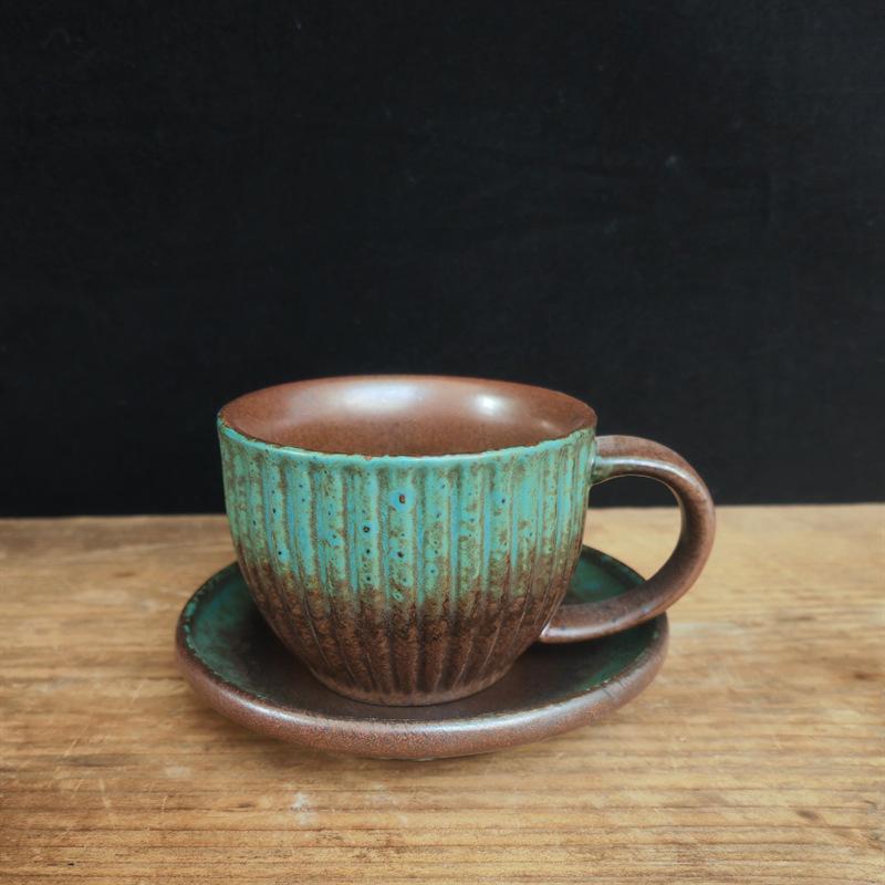 Набор полосатых кофейных чашек и блюдец, Ретро чашка для кофе с эффектом печной глазури, Креативная керамическая чашка, Легкая роскошь, Чашка для послеобеденного чая, Чашка из грубой керамики 220ml
