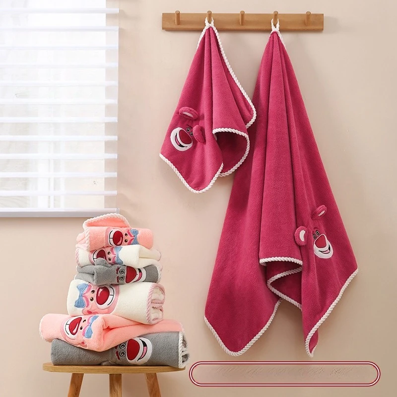 Набор полотенец Miniso из кораллового флиса с клубничным медведем, банное полотенце, оптовая продажа, водопоглощающее домашнее полотенце для мытья лица с героями мультфильмов для взрослых и детей