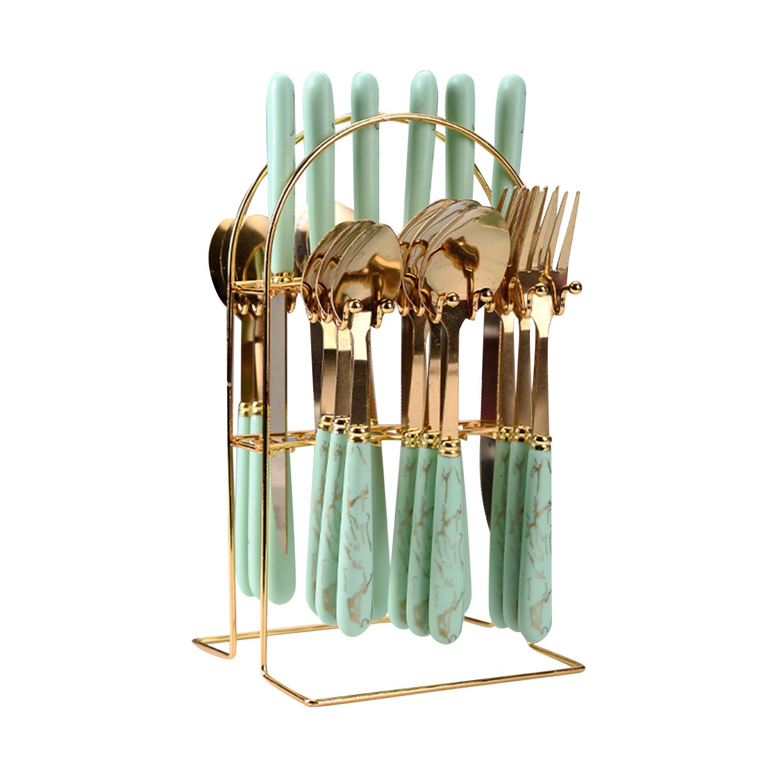 Набор посуды из нержавеющей стали из 24 предметов, керамическая ручка, узор, пластиковая ручка, набор ножей, ложек и вилок в западном стиле One Size зелёный