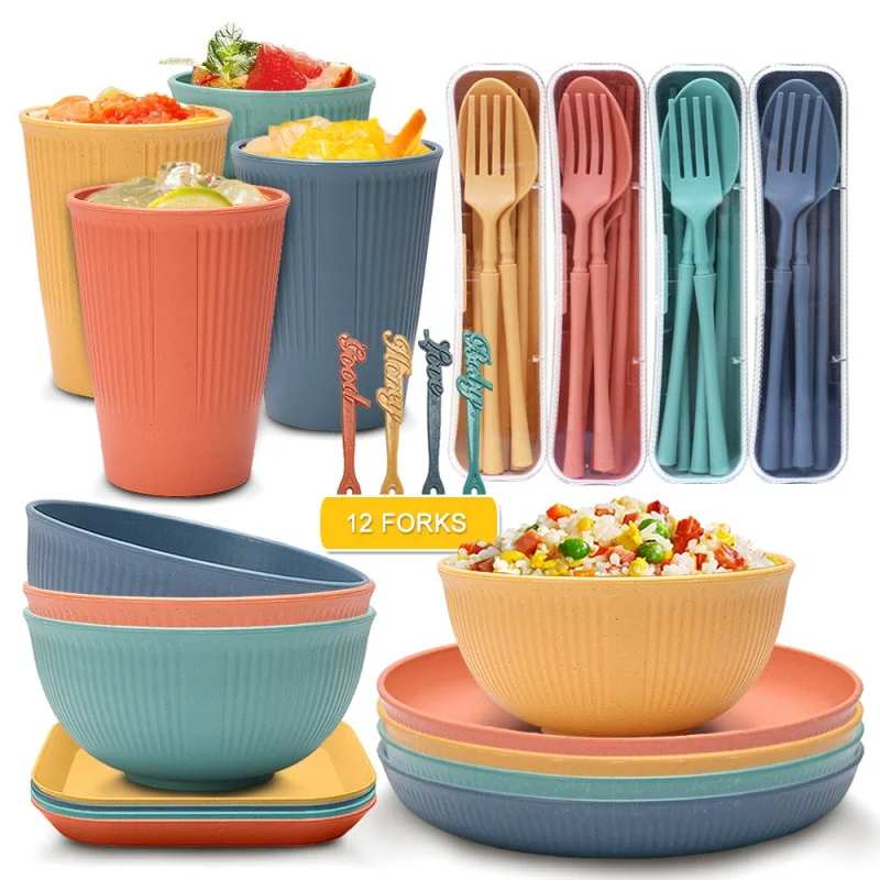 Набор посуды из пшеничной соломы с вертикальным узором, домашняя креативная Вертикальная чаша с рисунком, п