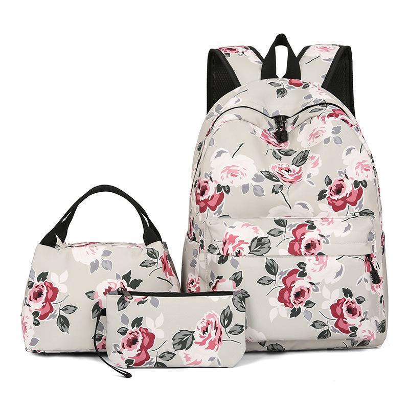 Набор рюкзаков из трех предметов. Школьная сумка. Сумка для обеда. Простой рюкзак с цветочным принтом. Школьная сумка большой вместимости. серый