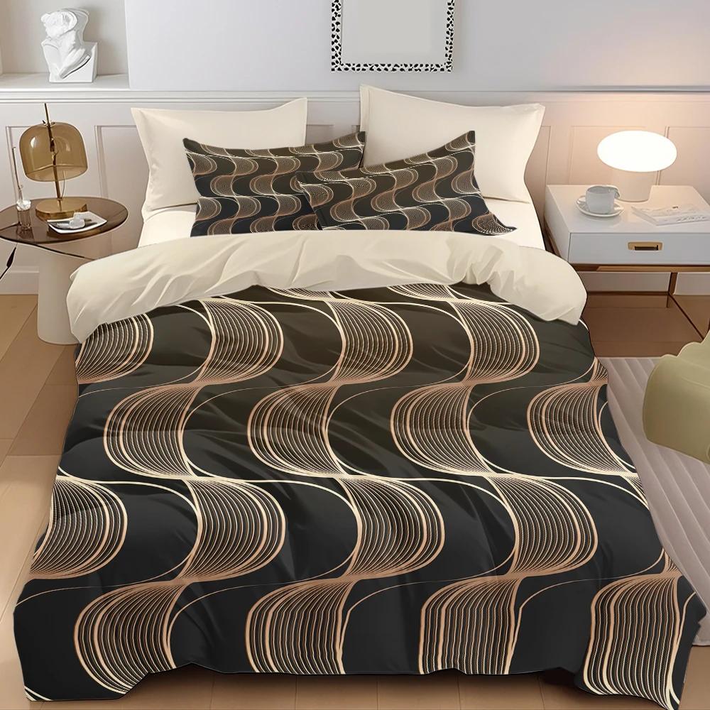 Набор стеганого белья из 3 предметов с принтом коричневых волнистых полос - Включает 1 пододеяльник и 2 наволочки (без наполнителя) 135x200cm