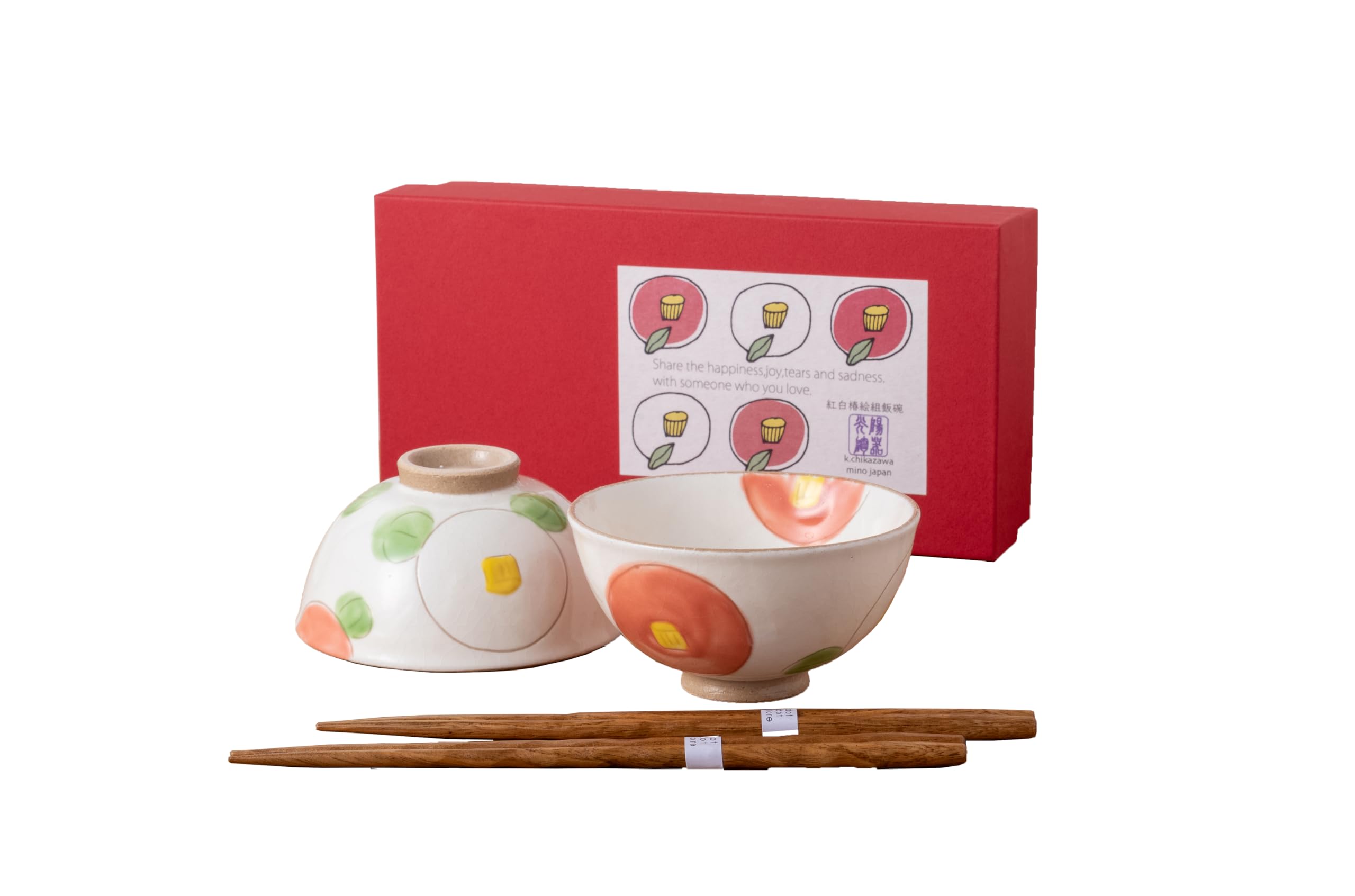 Набор столовой посуды Татара Пара чайных пиал для риса Красная и белая камелия Пара пиал для риса Сделано в Пиалы, Пиалы, Пиалы, Керамика, Япония, K7-56 слоновая кость