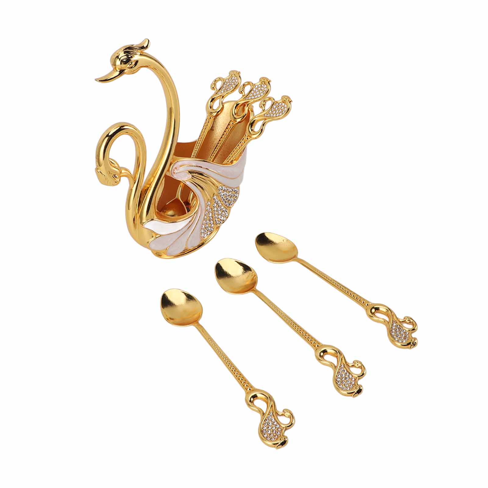 Набор столовых приборов в форме лебедя, металлическая посуда, набор столовых приборов, декоративная подставка в форме лебедя с 6 ложками для разноцветный