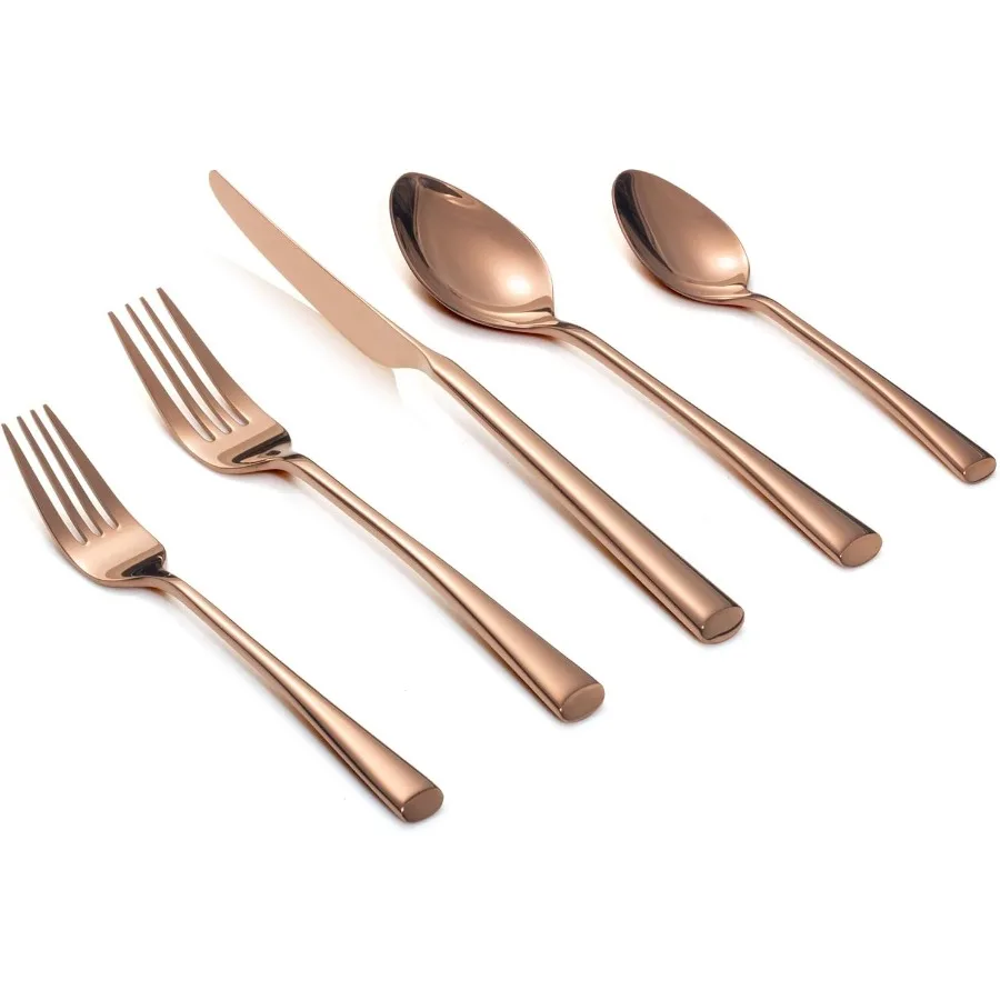 Набор столовых приборов из кованой нержавеющей стали розового золота, 20 предметов, набор столовых приборов, сервиз на 4 человека, серебряная отделка, можно мыть в посудомоечной машине