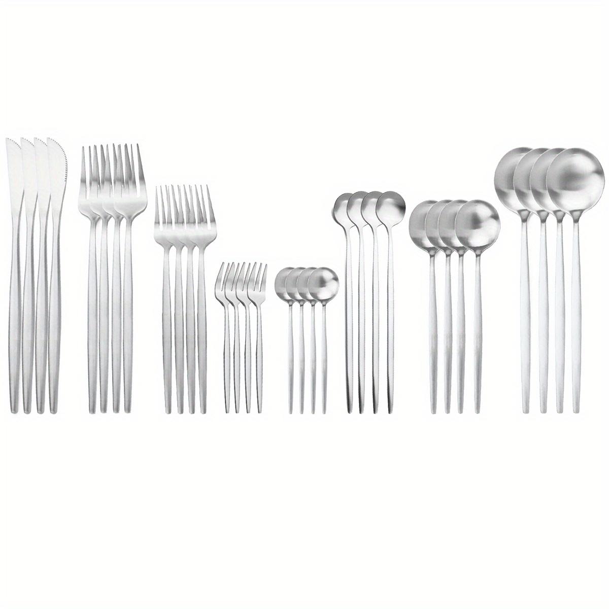 Набор столовых приборов из нержавеющей стали премиум-класса из 32 предметов - MatteCutlery на 4 персоны Прочная, устойчивая к ржавчине посуда для дома серебряный