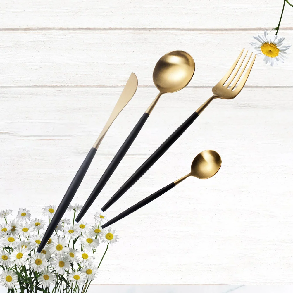 Stainless Steel Cutlery Set Black Knife Fork Spoon Tableware Modern Smooth Mirror Polish Restaurant Style Utensils