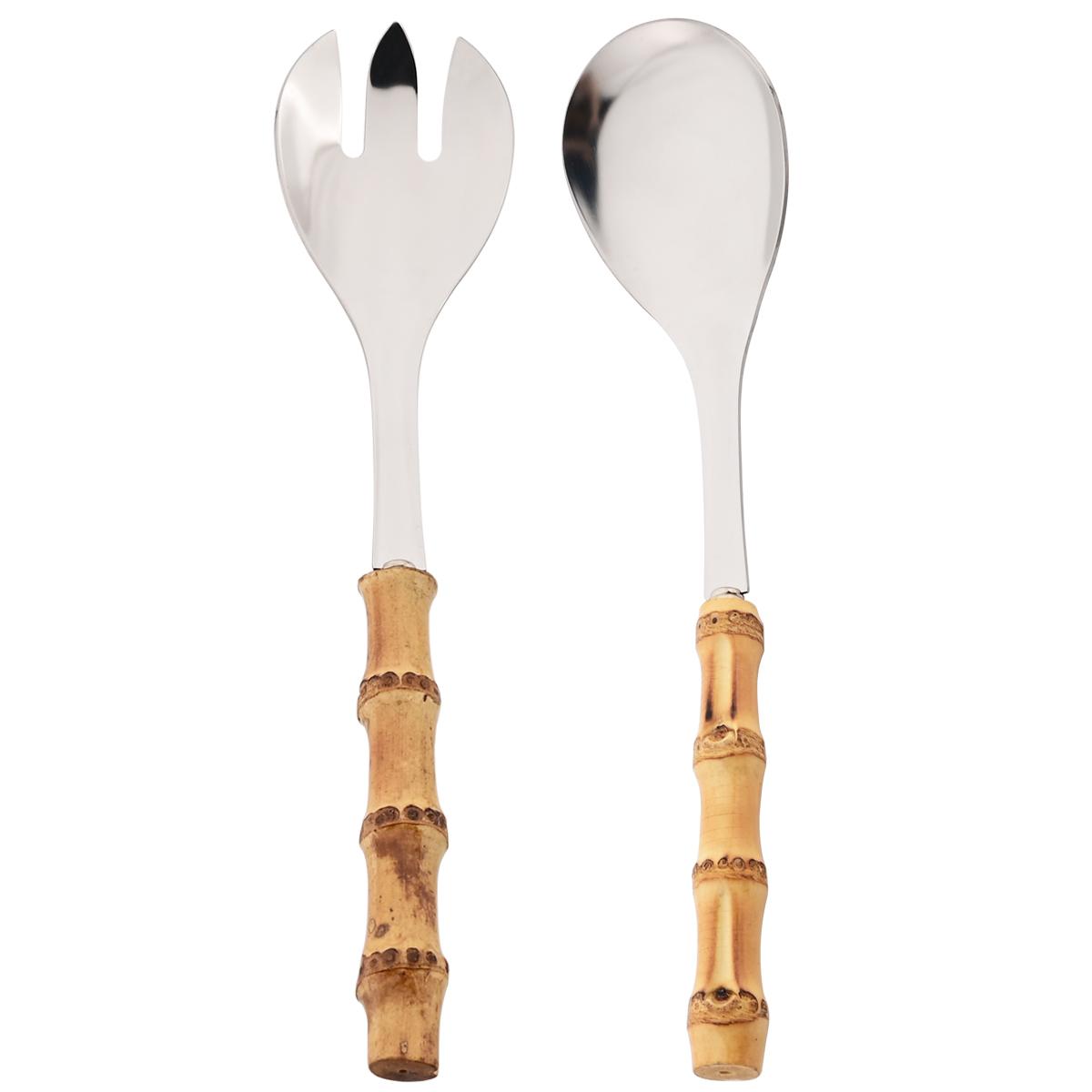Набор столовых приборов из 2/4 предметов с бамбуковой ручкой, вилка для салата, ложка, набор столовых приборов, зеркальная нержавеющая сталь, столовые приборы в западном стиле для дома, кухни, стола