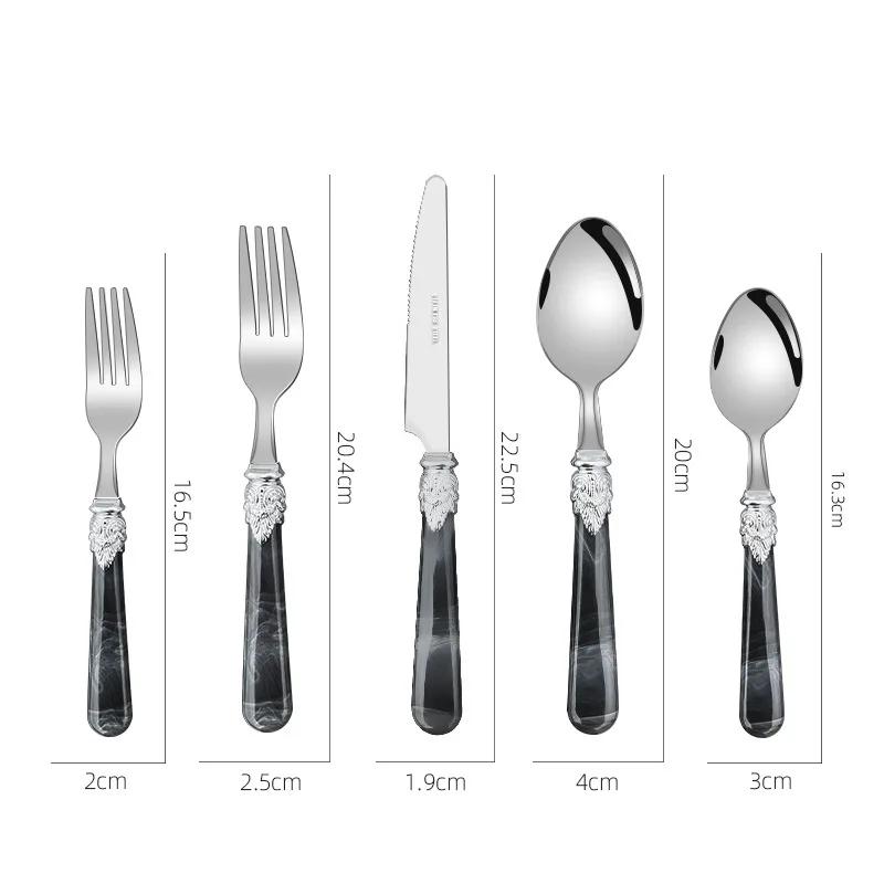 Набор столовых приборов из 20/30 предметов из нержавеющей стали, пластика с мраморной ручкой, столовые приборы, ножи, вилки, ложки, можно мыть в посудомоечной машине 4 set чёрный
