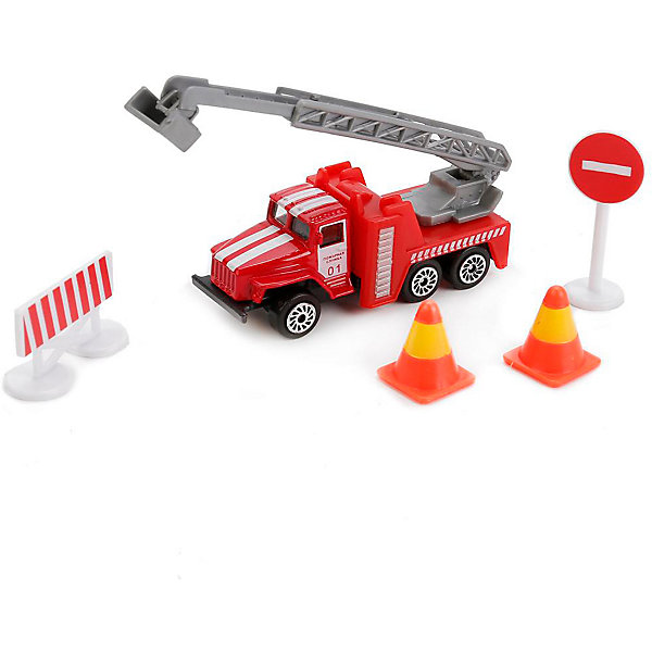 Набор с машинкой Технопарк Урал пожарный 4 дорожных знака, 7,5 см, Разноцветный