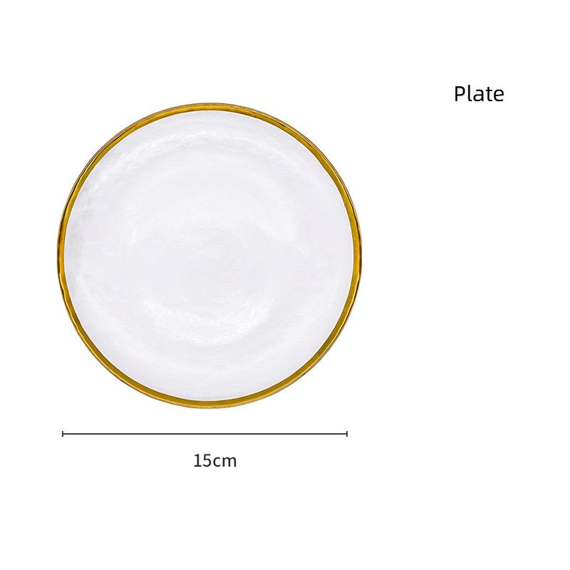 Набор тарелок и мисок из термостойкого стекла с золотой окантовкой — элегантная прозрачная посуда для украшения дома и вечеринок C