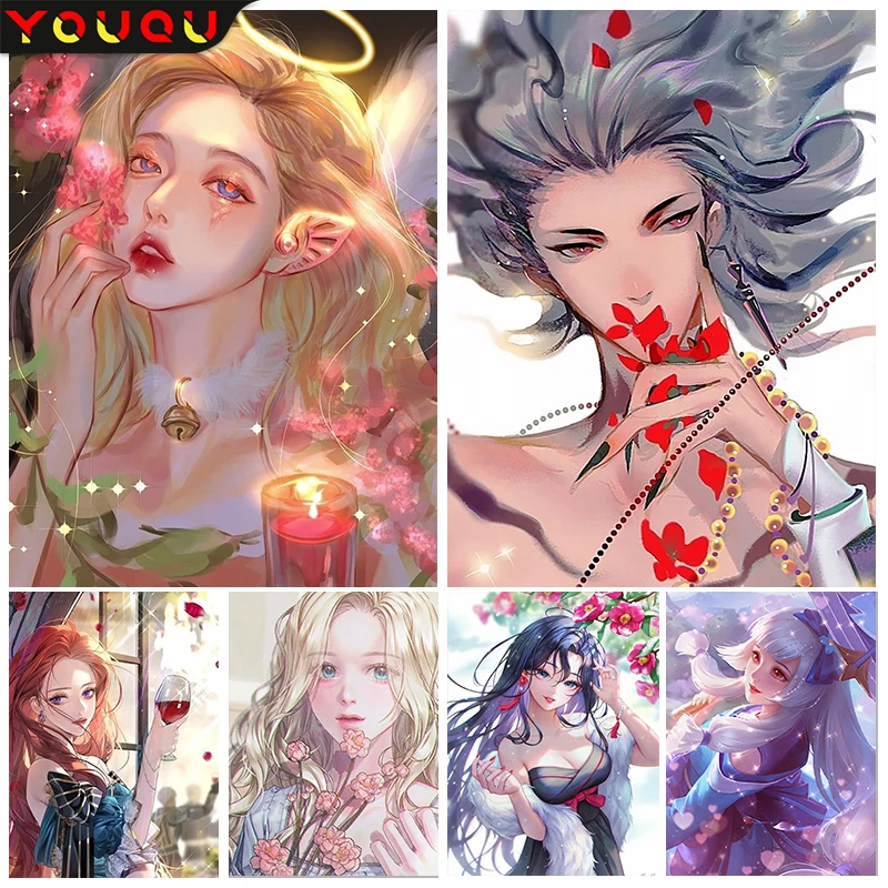 YOUQU Portrait Diamond Painting Character Anime Picture DIY Diamond Embroidery Cross Stitch Girl Mosaic 5D Home Decoration Gift