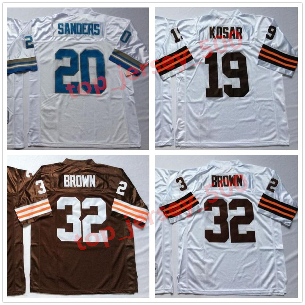 NCAA Football 32 Jim Brown 19 Bernie Kosar Jerseys Johnny Unitas Jersey 20 Barry Sanders Man Vintage White Blue All Stitched, As shown in illustration