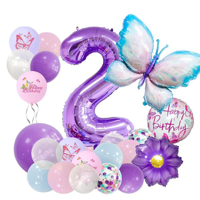 Набор фиолетовых шаров-бабочек для украшения детского дня рождения с латексными шарами 2