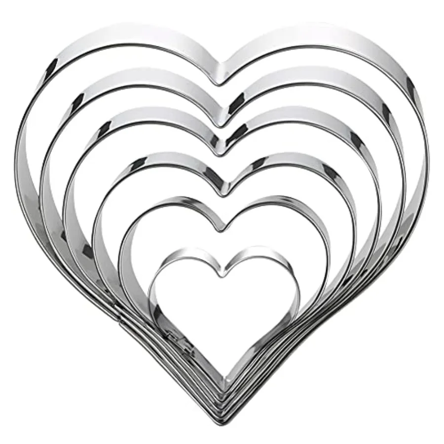 Набор формочек для печенья в форме сердца, 6 предметов, текстурированный размер, нержавеющая сталь