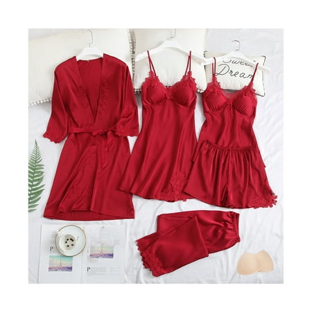 Liveday Female Pajamas Set 5pcs Sleepwear Lace Comfortable Sleepwear Loungewear