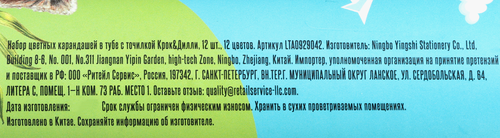 Набор цветных карандашей Крок&Дилли в тубе с точилкой, 12 цветов, 12 шт