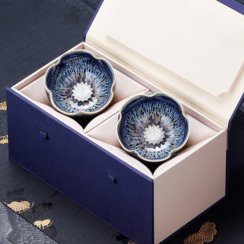 Набор чайных чашек, керамическая подарочная коробка с 2 чашками, лотос Цзяньань, коллекционный чайный сервиз, чайная чашка, премиум-класса, бизнес-подарочная коробка для сувениров