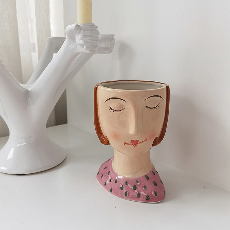 Creative Ceramic Human Face Vase Simple Modern Living Room Decoration Small Vase Plant Accessories Jarron Home Products AH50HP