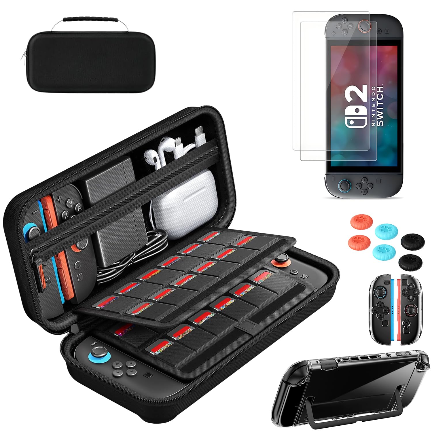 Набор чехлов для хранения Switch 2 и полная защита для ПК, 2 стальные защитные пленки для экрана, 6 силиконовых накладок, тоньше, чем у конкурентов, вмещает 24 игры и идеально подходит для путешествий