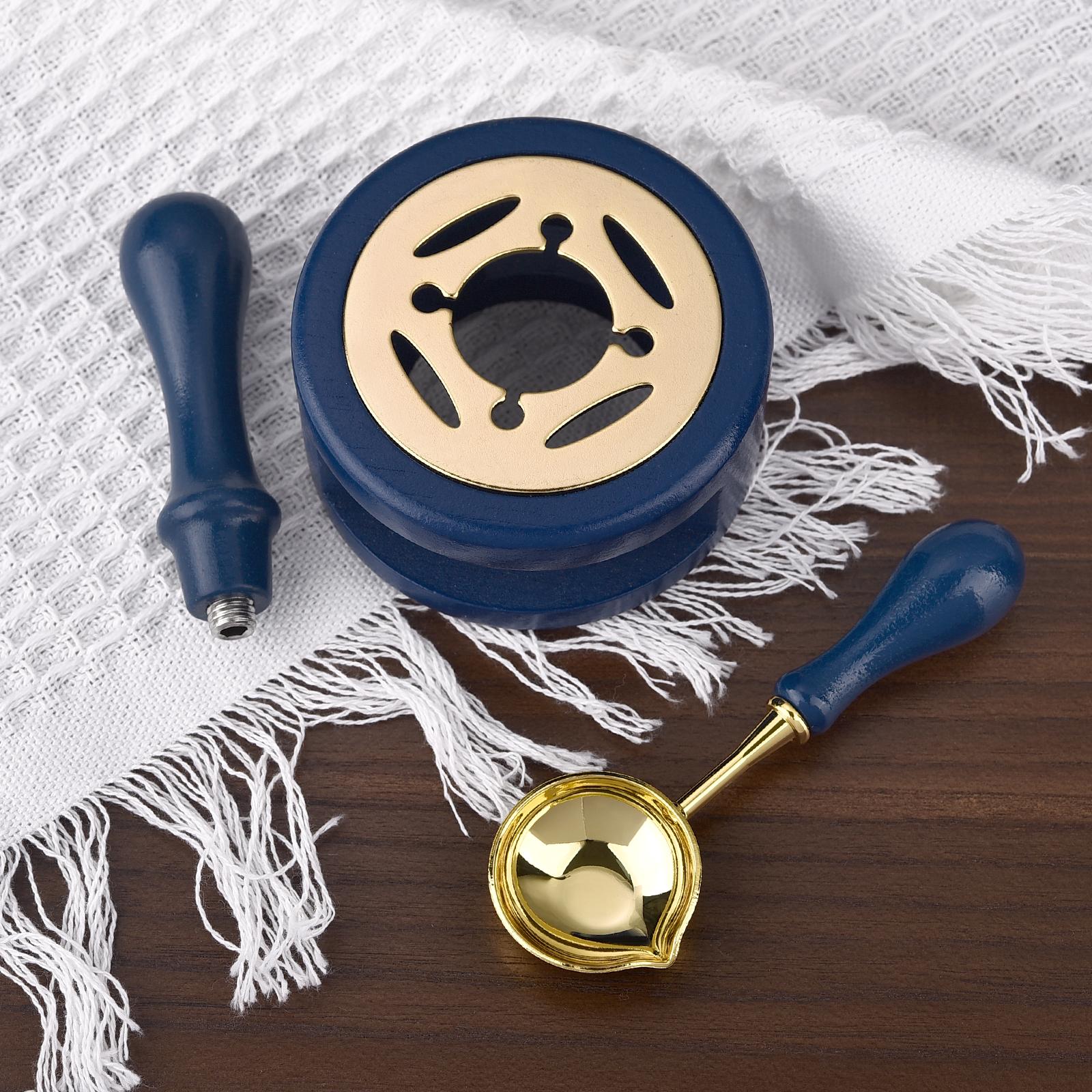 Набор штампов с сургучной печатью, лаковая печь, плита из цельного дерева, огненная краска, принадлежности для уплотнений, восковая ложка, уплотнительный воск, плавильный котел, принадлежности для рукоделия темно-синий