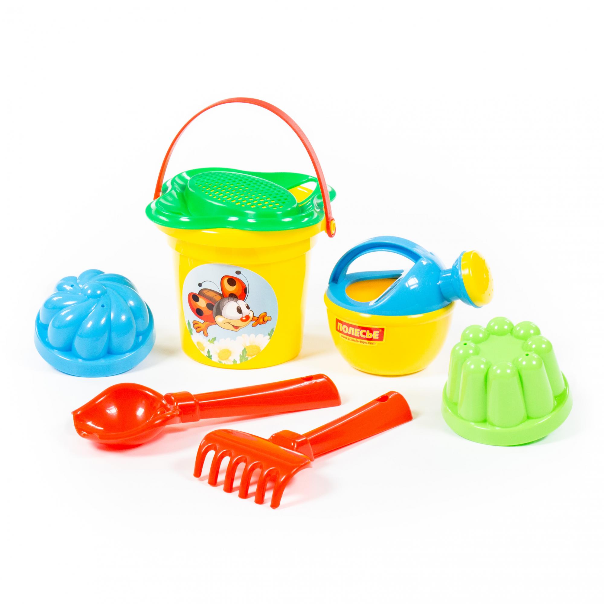 Набор №238: ведро малое, ситечко-цветок, совок №2, грабельки №2, 2 формочки, лейка малая №3