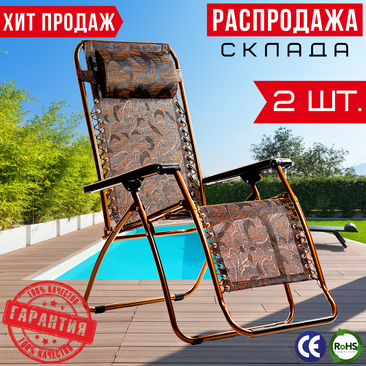 Набор - 2 шт. Садовое Кресло Шезлонг Складное до 120 кг Zero Gravity Коричневое 1032BF для Дачи
