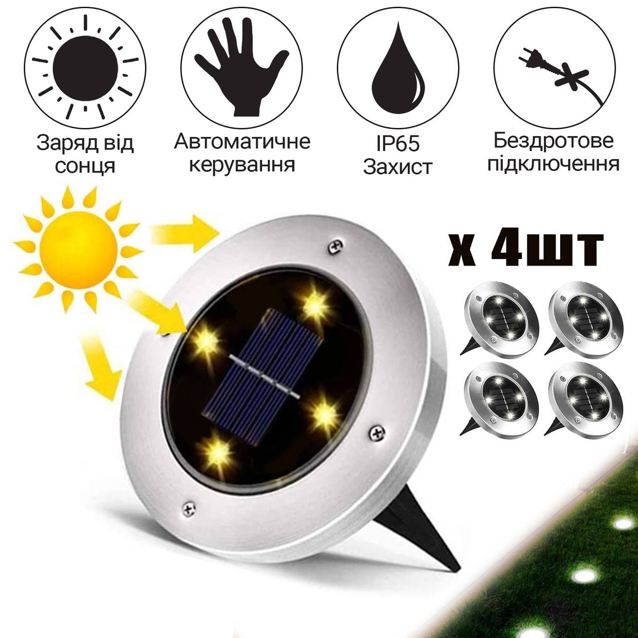 Набор 4шт Садовый светильник на солнечной батарее уличный LED фонарь для дачи дома сада Solar Disk BLM