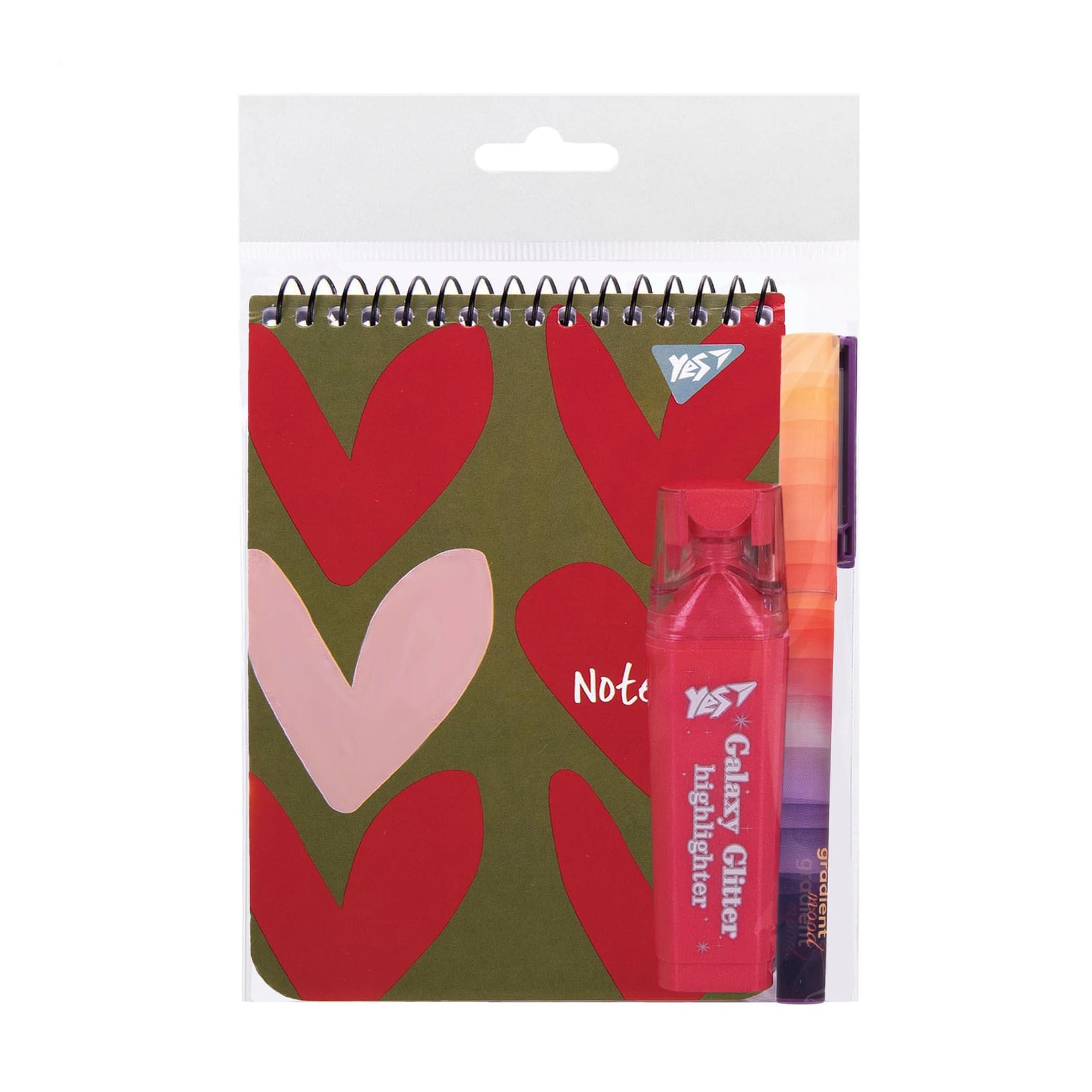 Набір канцелярії 2 YES Hearts (блокнот, 1 шт + маркер, 1 шт + ручка, 1 шт) (450155)