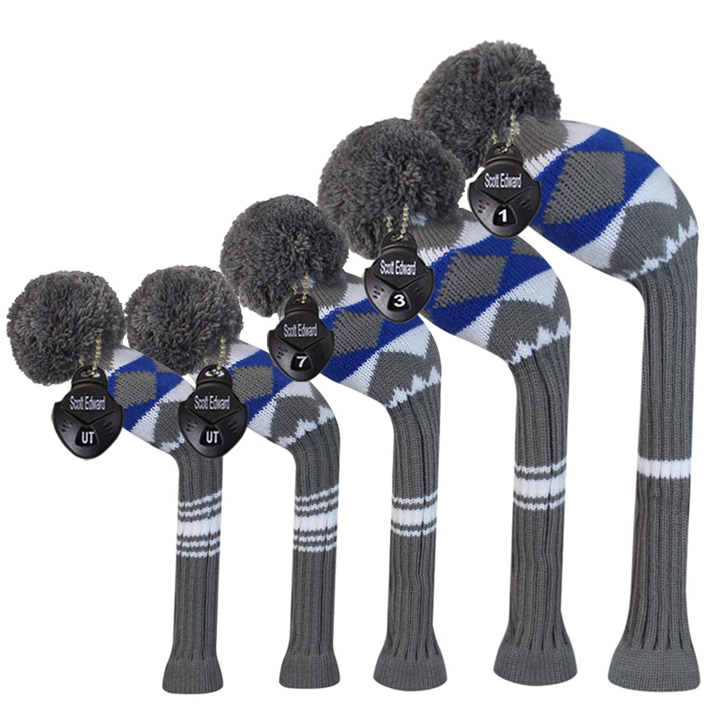 Набір індивідуальних чохлів для гольф-головок темного кольору, 5 шт. (Сіро-блакитний білий візерунок з інопланетянами)