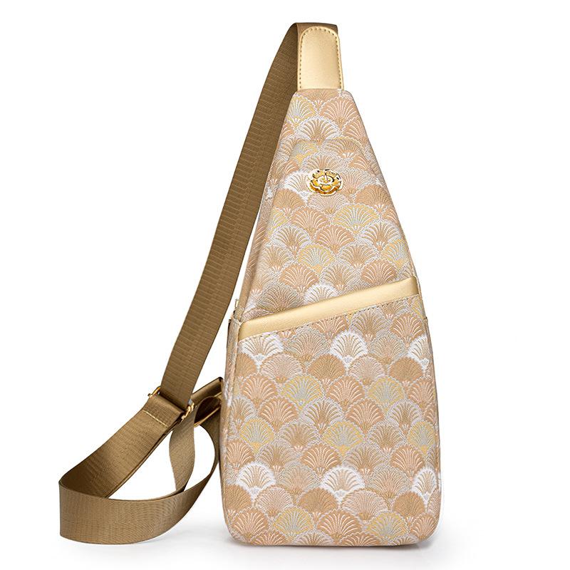 Нагрудная сумка Женская сумка через плечо Мягкая кожаная сумка через плечо Дорожная сумка с принтом золотой
