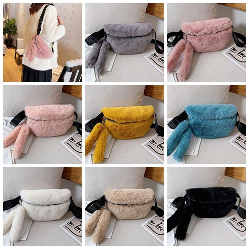 Нагрудная сумка из искусственного меха кролика, пуховая поясная сумка на молнии, милая плюшевая сумка через плечо для женщин/девочек