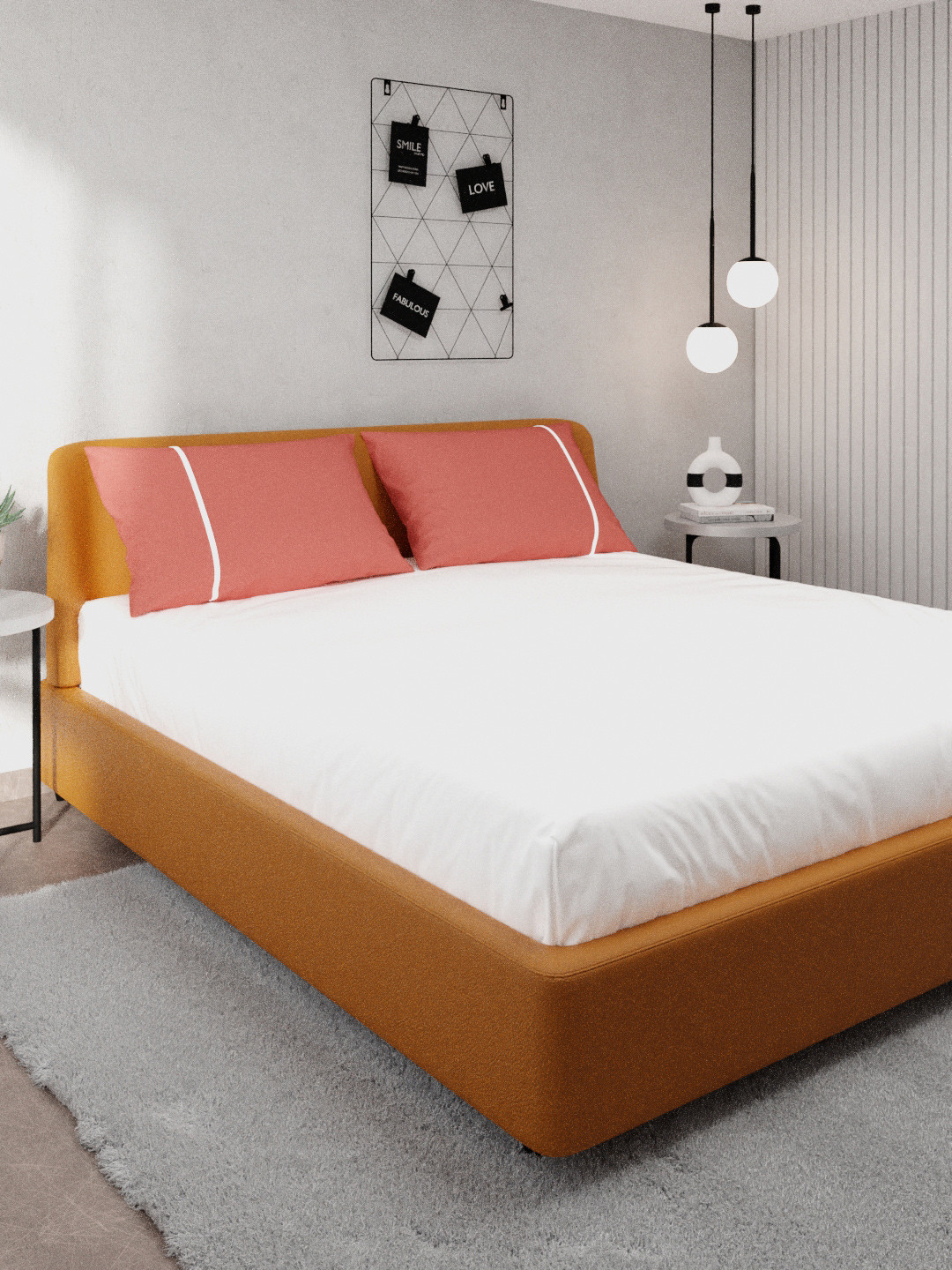 Stoa Paris White & Peach Solid 144 TC Cotton Queen Bedsheet with 2 Pillow Covers