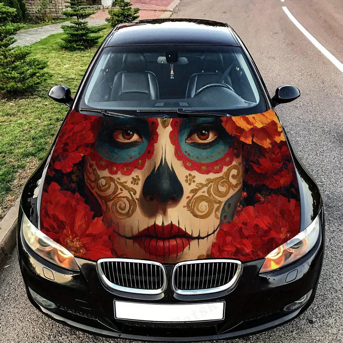 Наклейки на капот автомобиля с цветочным лицом для девочек, водонепроницаемые самоклеящиеся, устойчивые к царапинам, легко приклеиваемые, прочные автомобильные наклейки из ПВХ, автомобиль d