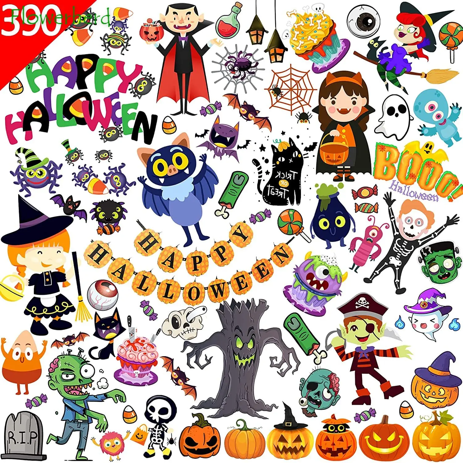 Наклейки на окна для Хэллоуина, тыквы деколь декорации, призрачная летучая мышь, паук, для детей, для Хэллоуина, вечеринки, класса, домашнего ...