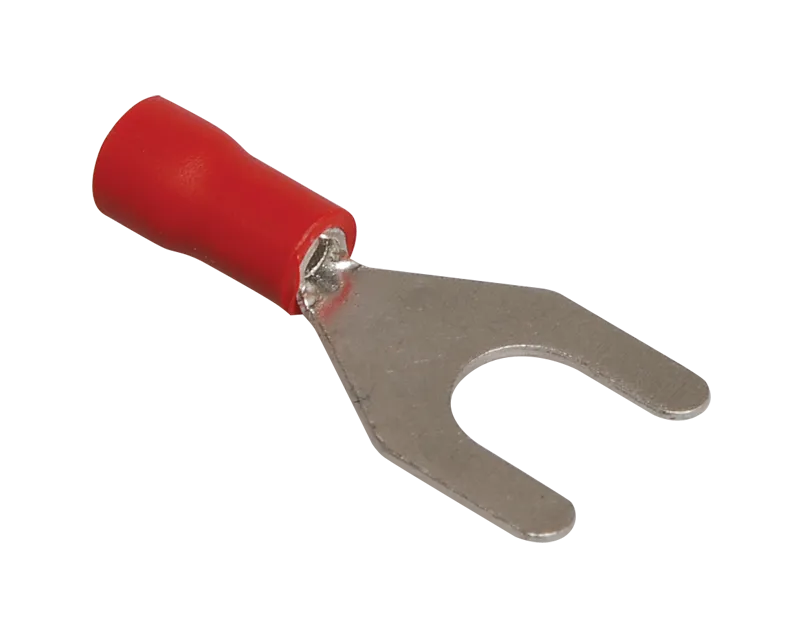 Наконечник НВИ вилочный изолированный, 0.5 мм² - 1.5 мм², медь, луженый, под опрессовку, красный, 100 шт., IEK НВИ 1,25-4 (UNL10-D15-4-4), НВИ 1,25-4
